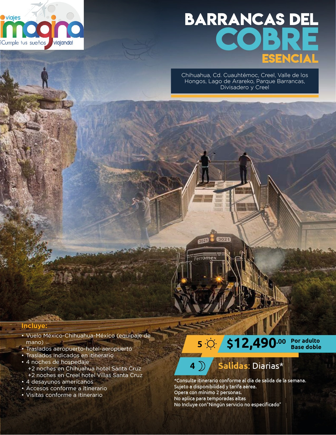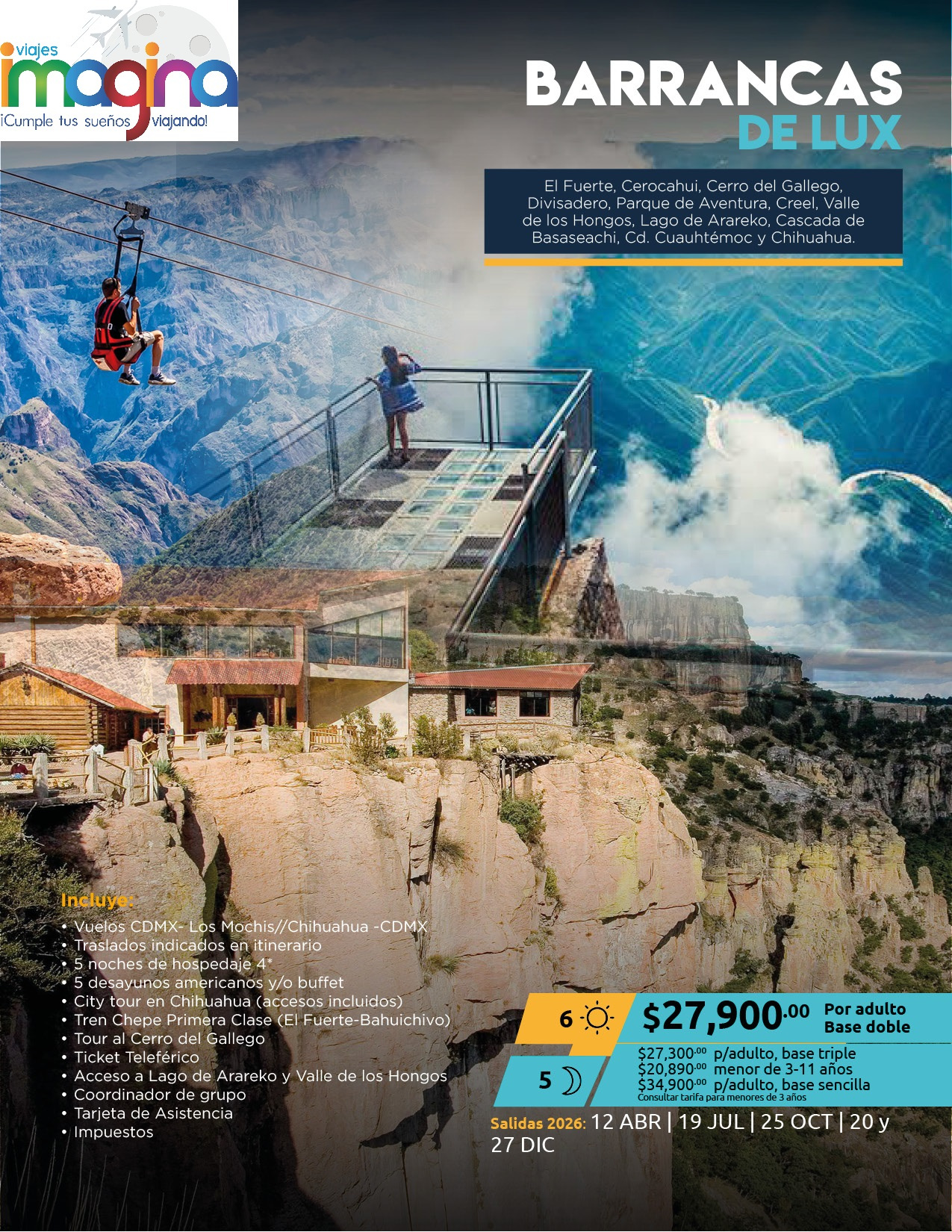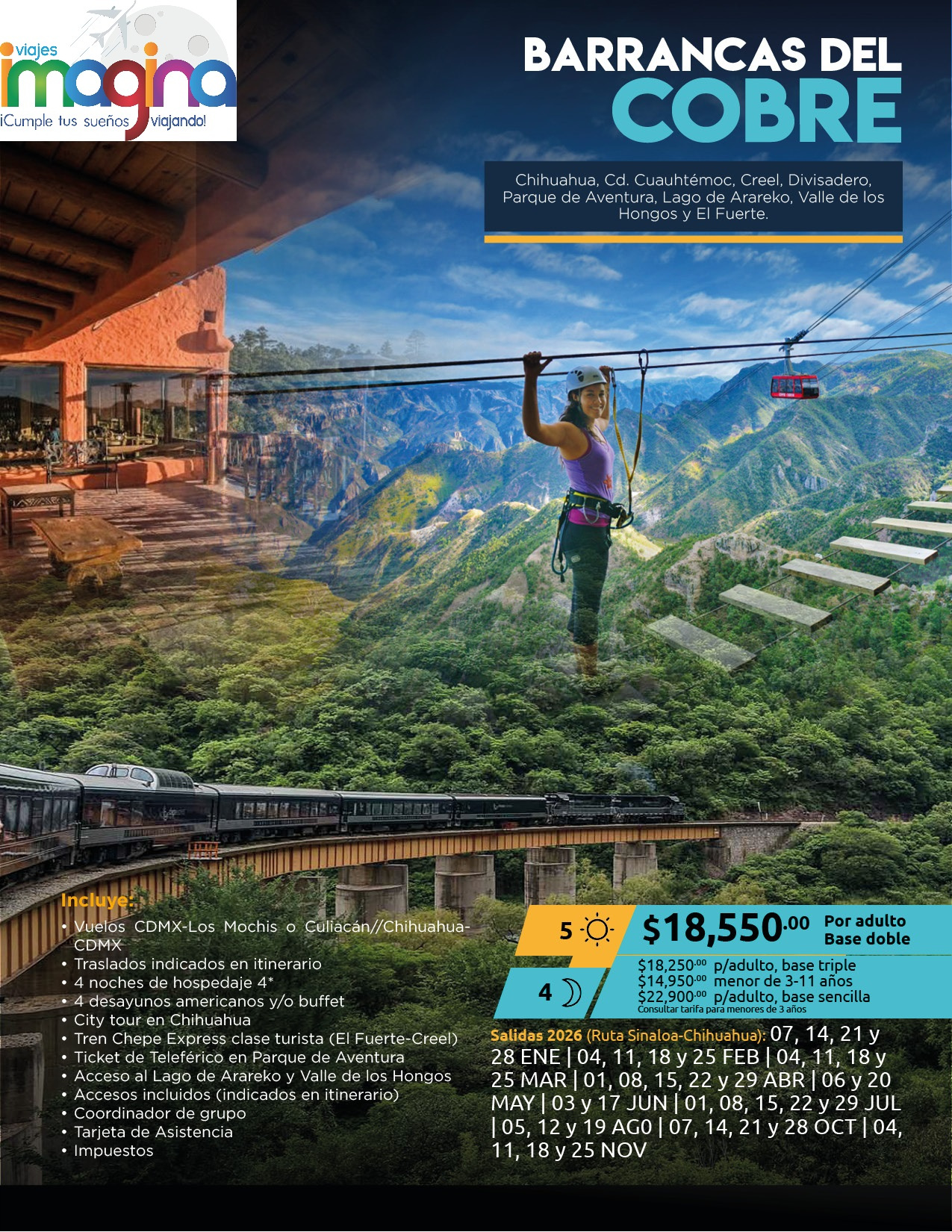 Visitando: El Fuerte, Cerocahui, Cerro del Gallego, Divisadero, Parque de Aventura, Creel, Valle de los Hongos, Lago de Arareko, Cascada de Basaseachi, Cd. Cuauhtémoc y Chihuahua.