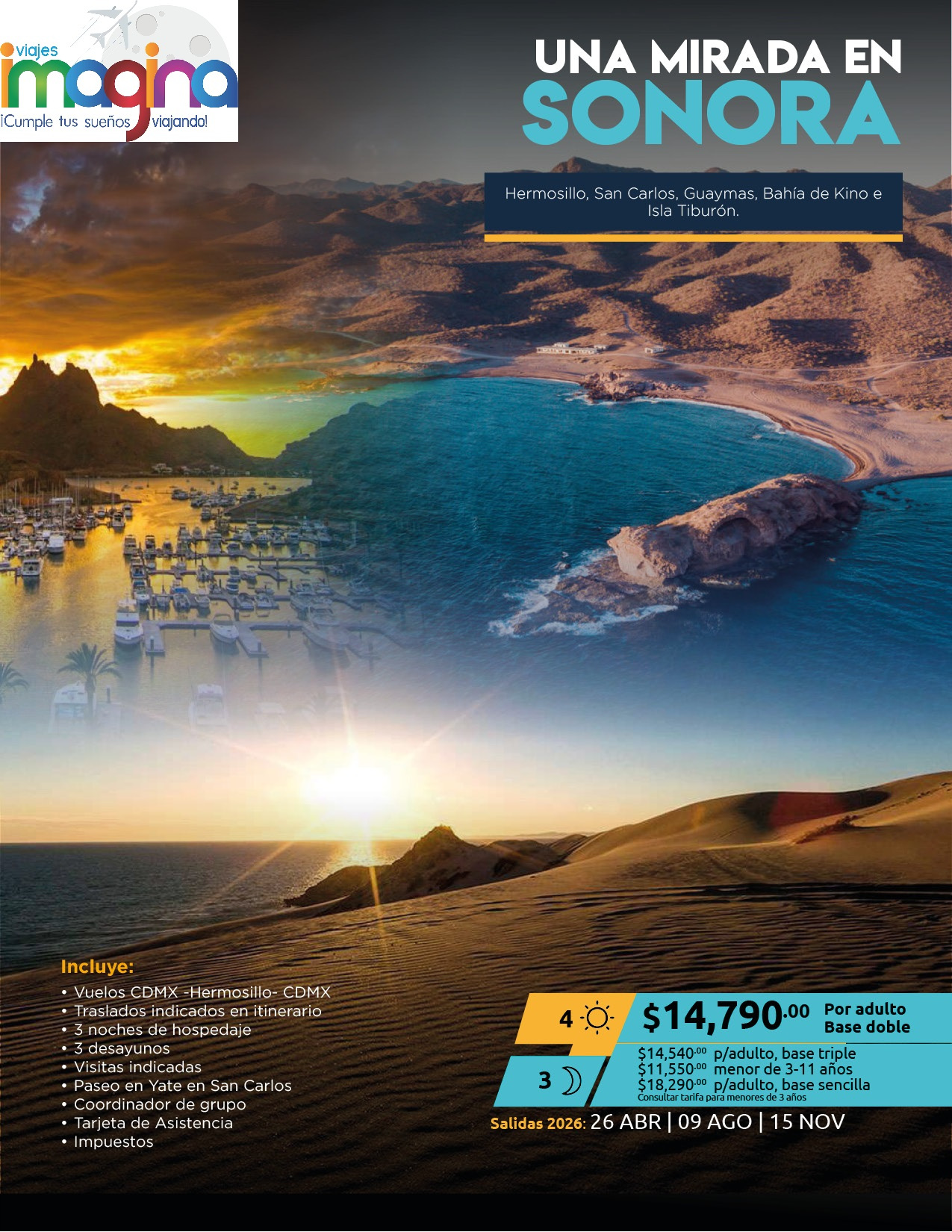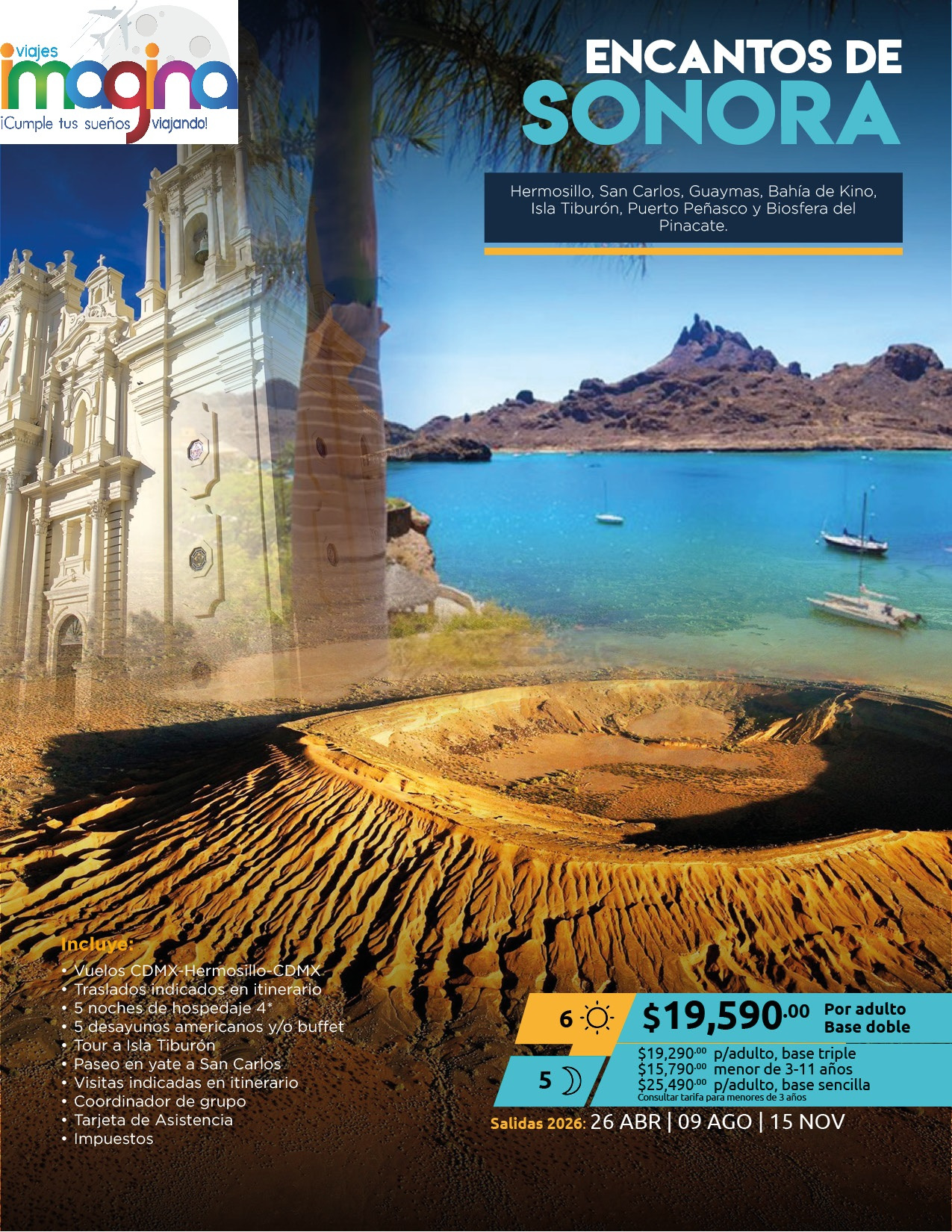 Visitando: Hermosillo, San Carlos, Guaymas, Bahía de Kino, Isla Tiburón, Puerto Peñasco y Biosfera del Pinacate.