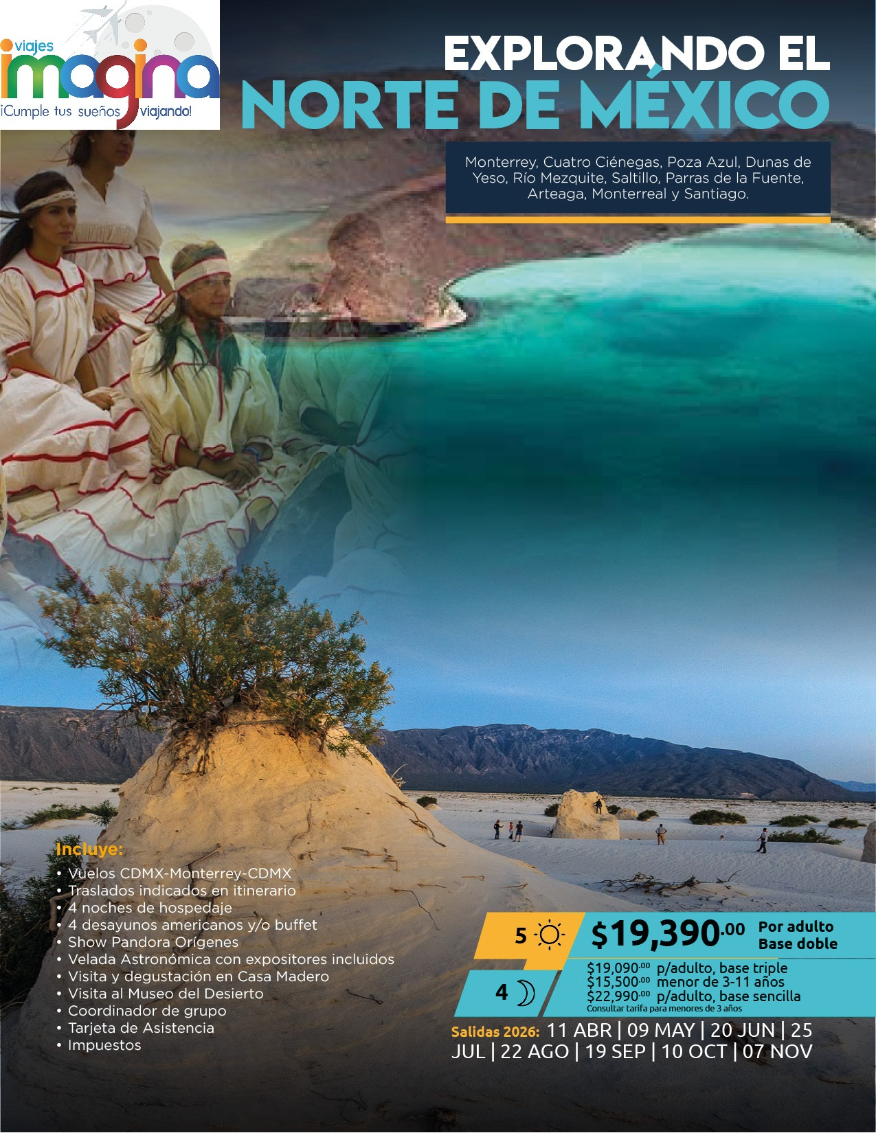 Visitando: Monterrey, Cuatro Ciénegas, Poza Azul, Dunas de Yeso, Río Mezquite, Saltillo, Parras de la Fuente, Arteaga, Monterreal y Santiago.