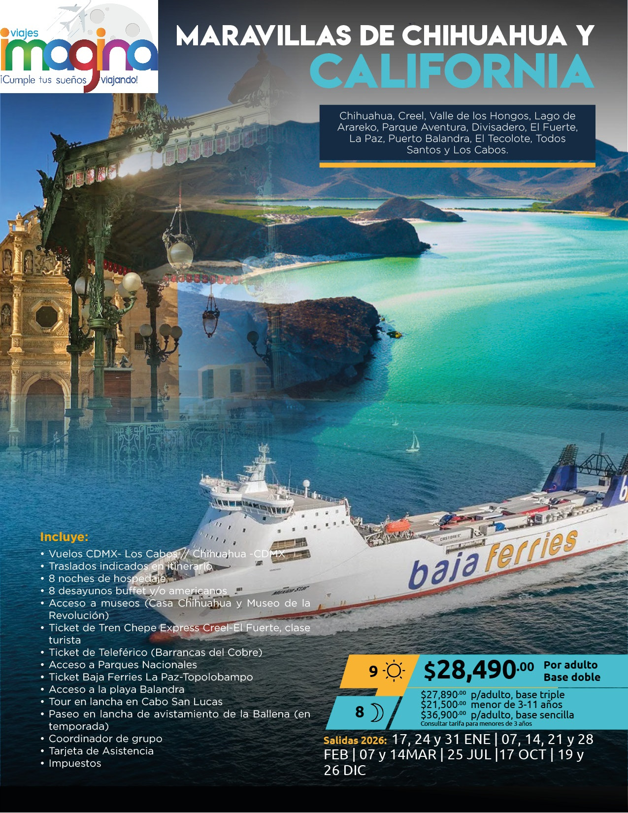 Visitando: Chihuahua, Creel, Valle de los Hongos, Lago de Arareko, Parque Aventura, Divisadero, El Fuerte, La Paz, Puerto Balandra, El Tecolote, Todos Santos y Los Cabos.