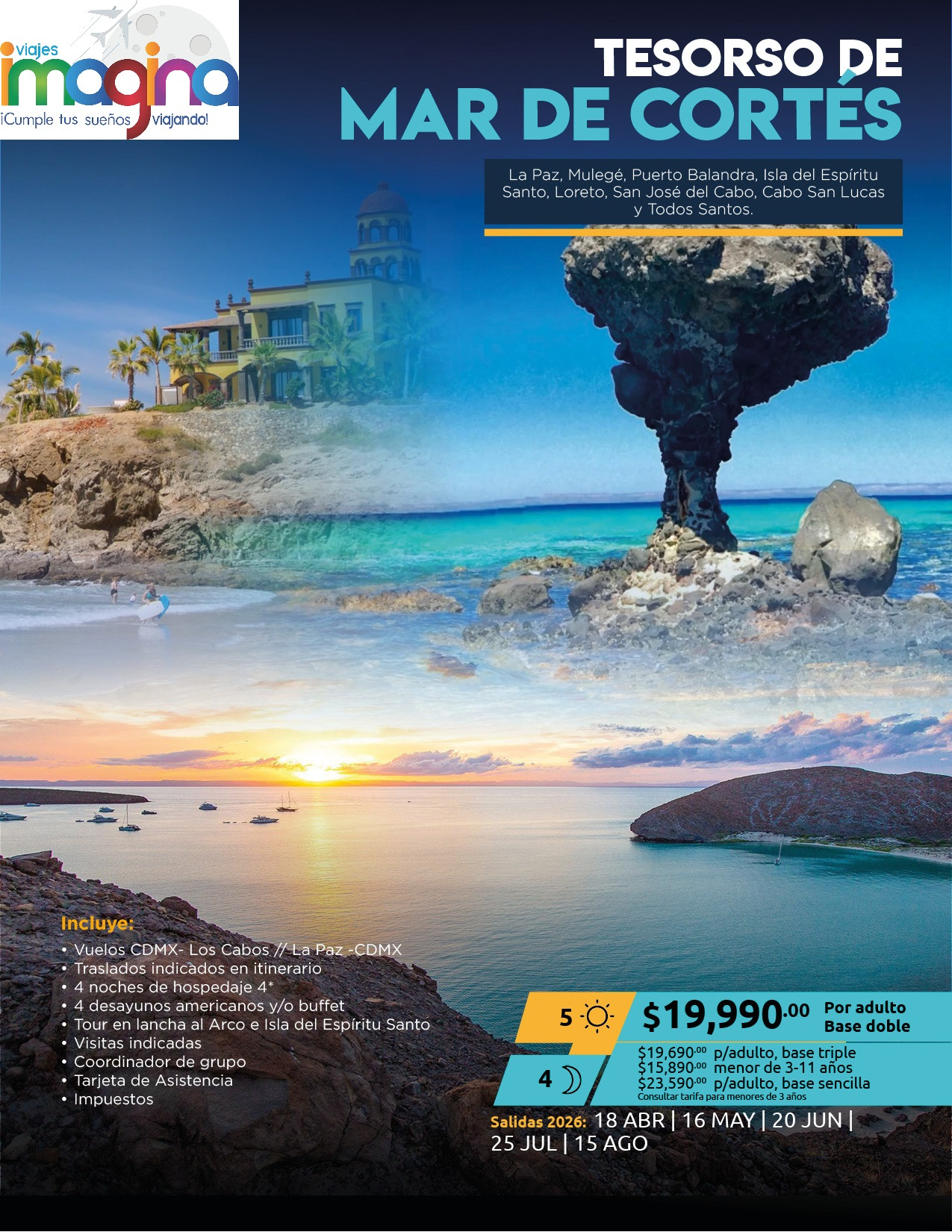 Visitando: La Paz, Mulegé, Puerto Balandra, Isla del Espíritu Santo, Loreto, San José del Cabo, Cabo San Lucas y Todos Santos.