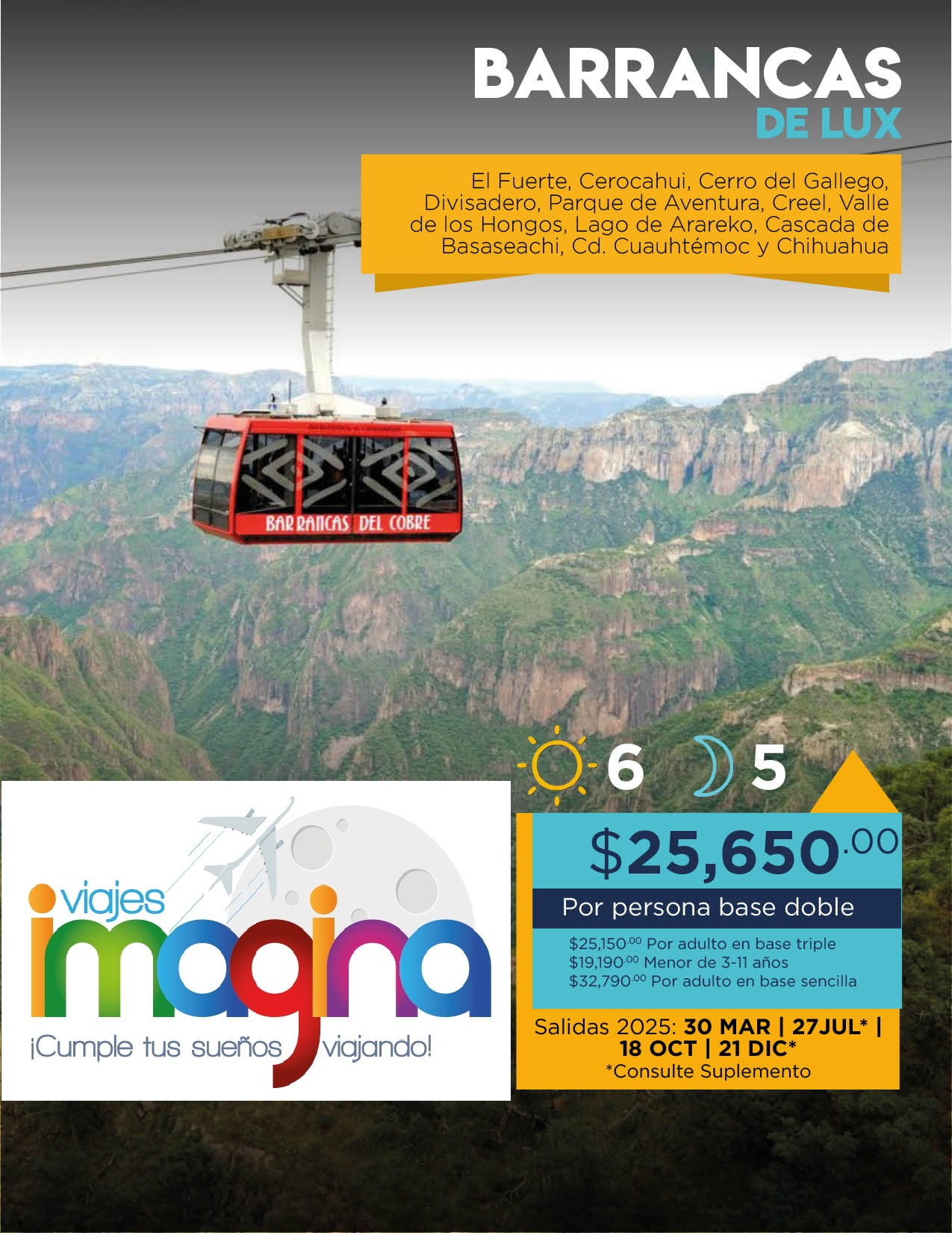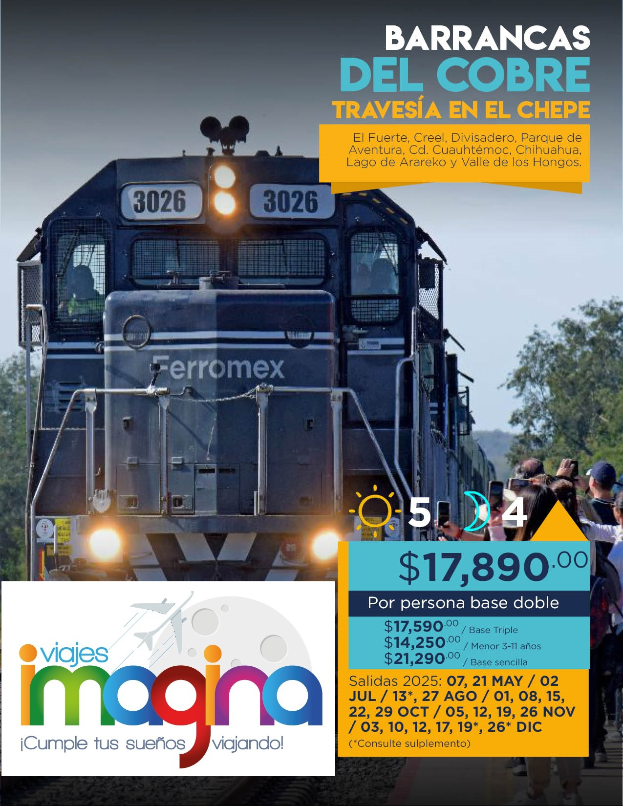 Visitando: El Fuerte, Cerocahui, Cerro del Gallego, Divisadero, Parque de Aventura, Creel, Valle de los Hongos, Lago de Arareko, Cascada de Basaseachi, Cd. Cuauhtémoc y Chihuahua.