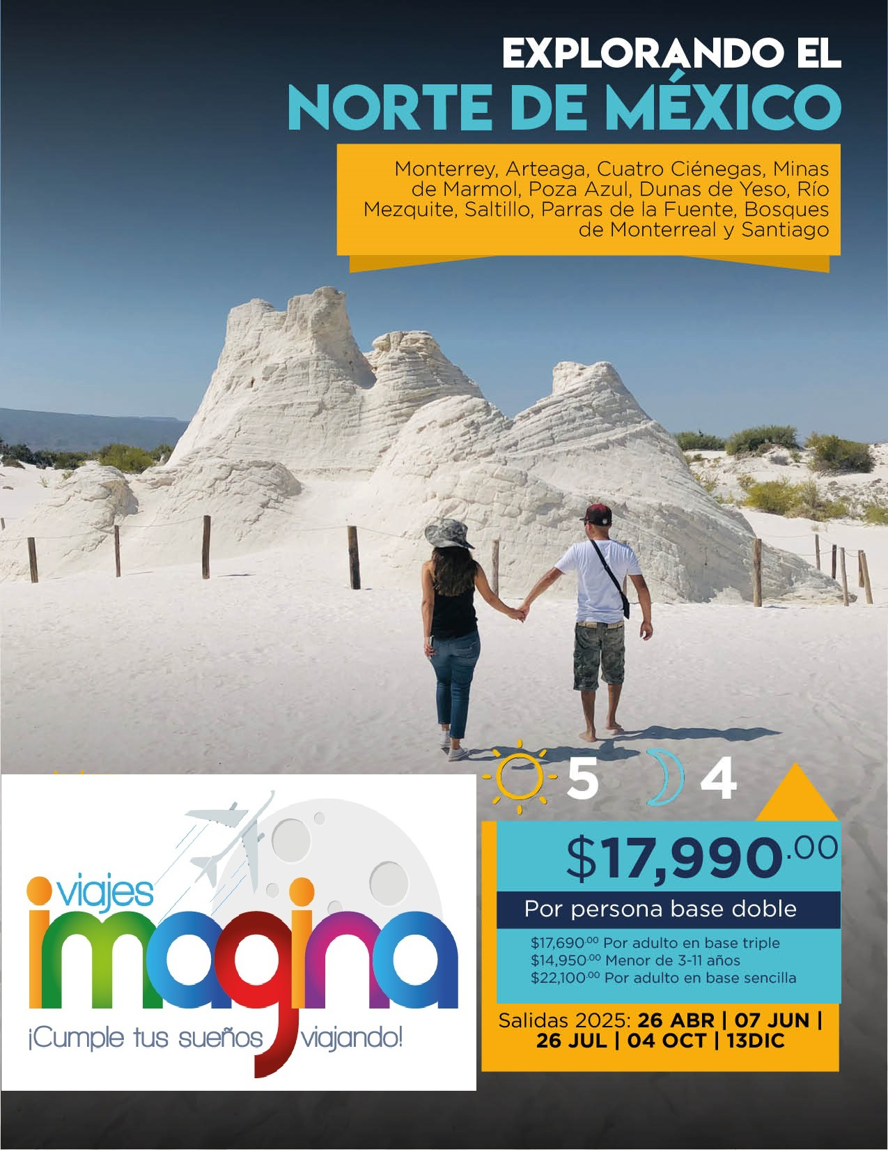 Visitando: Monterrey, Cuatro Ciénegas, Poza Azul, Dunas de Yeso, Río Mezquite, Saltillo, Parras de la Fuente, Arteaga, Monterreal y Santiago.