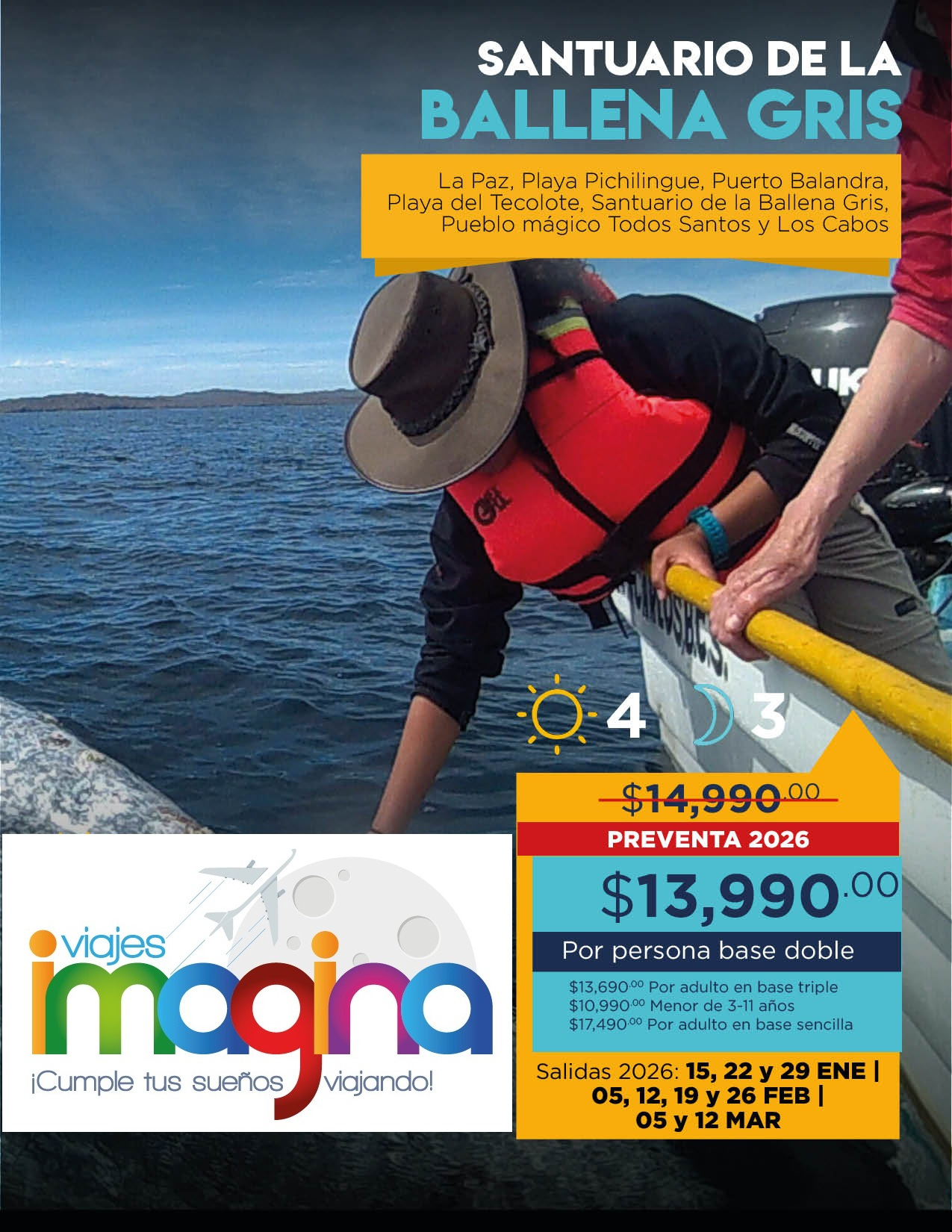 Visitando: La Paz, Playa del Pichilingue, Bahía de La Paz, Los Cabos, Puerto Balandra, Santuario de la Ballena Gris, Playa El Tecolote y pueblo mágico Todos Santos.